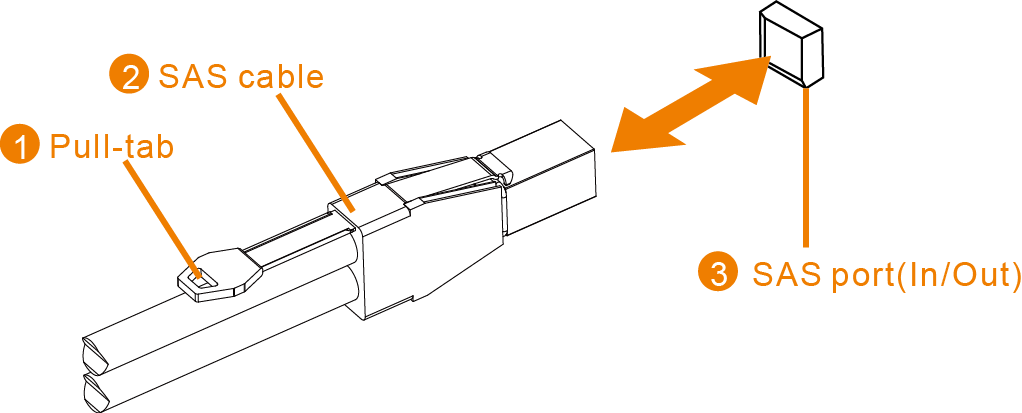 Tip: To remove the SAS cable, pull the pull-tab to release the cable from the connector on the ESM and the host system. To connect the SAS cable, push straight into the ESM or host system and listen for a click.